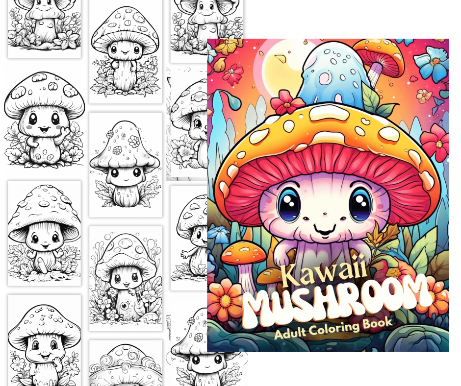 - 🌟 Add Your Magic Touch: Use your imagination to color each mushroom in vibrant hues, adding cute faces and playful details to make them truly kawaii.